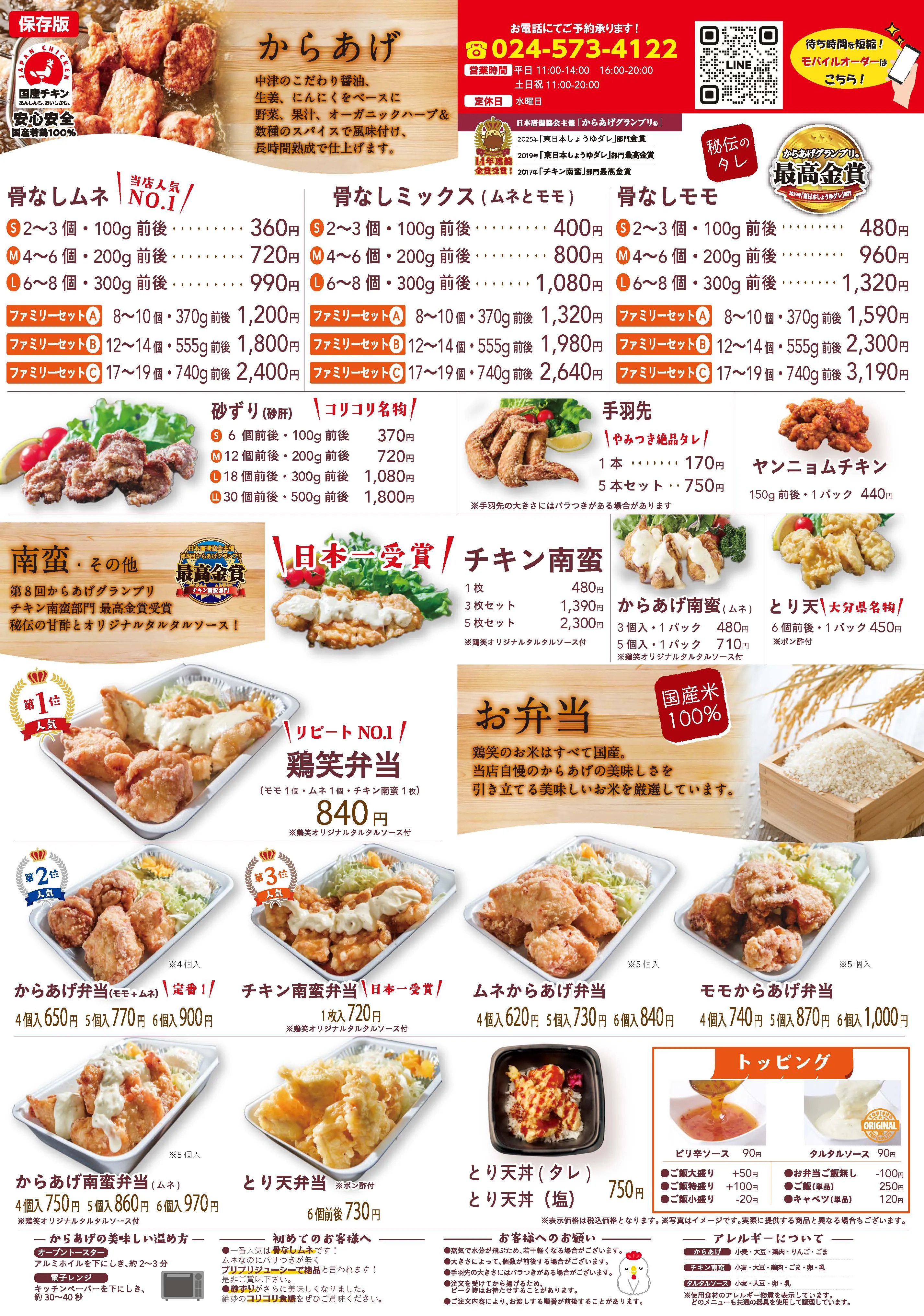 からあげ専門店 鶏笑 福島中央店定休日 - 営業開始 木曜日 11:00