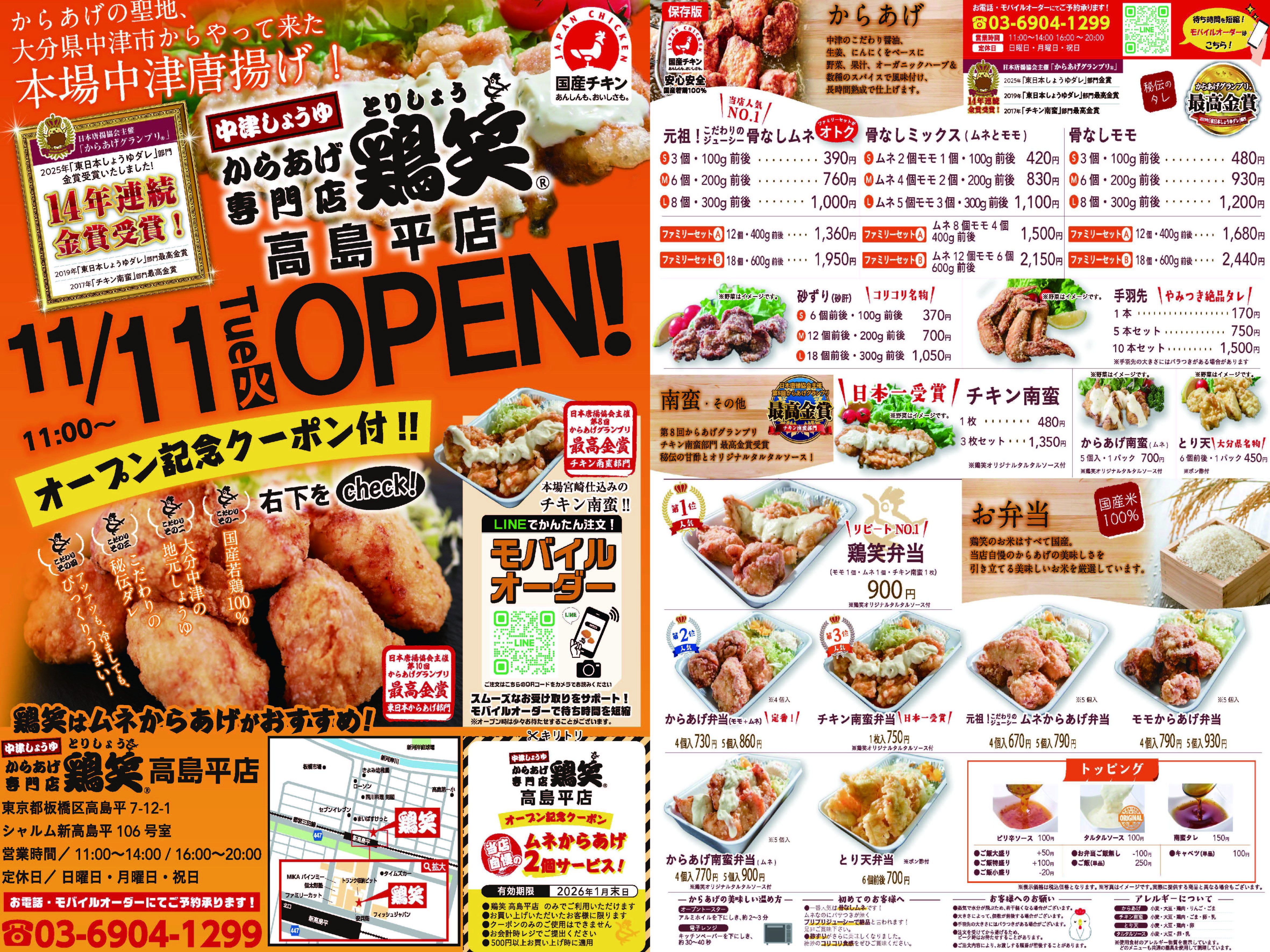 からあげ専門店 鶏笑 高島平店の最新情報一覧