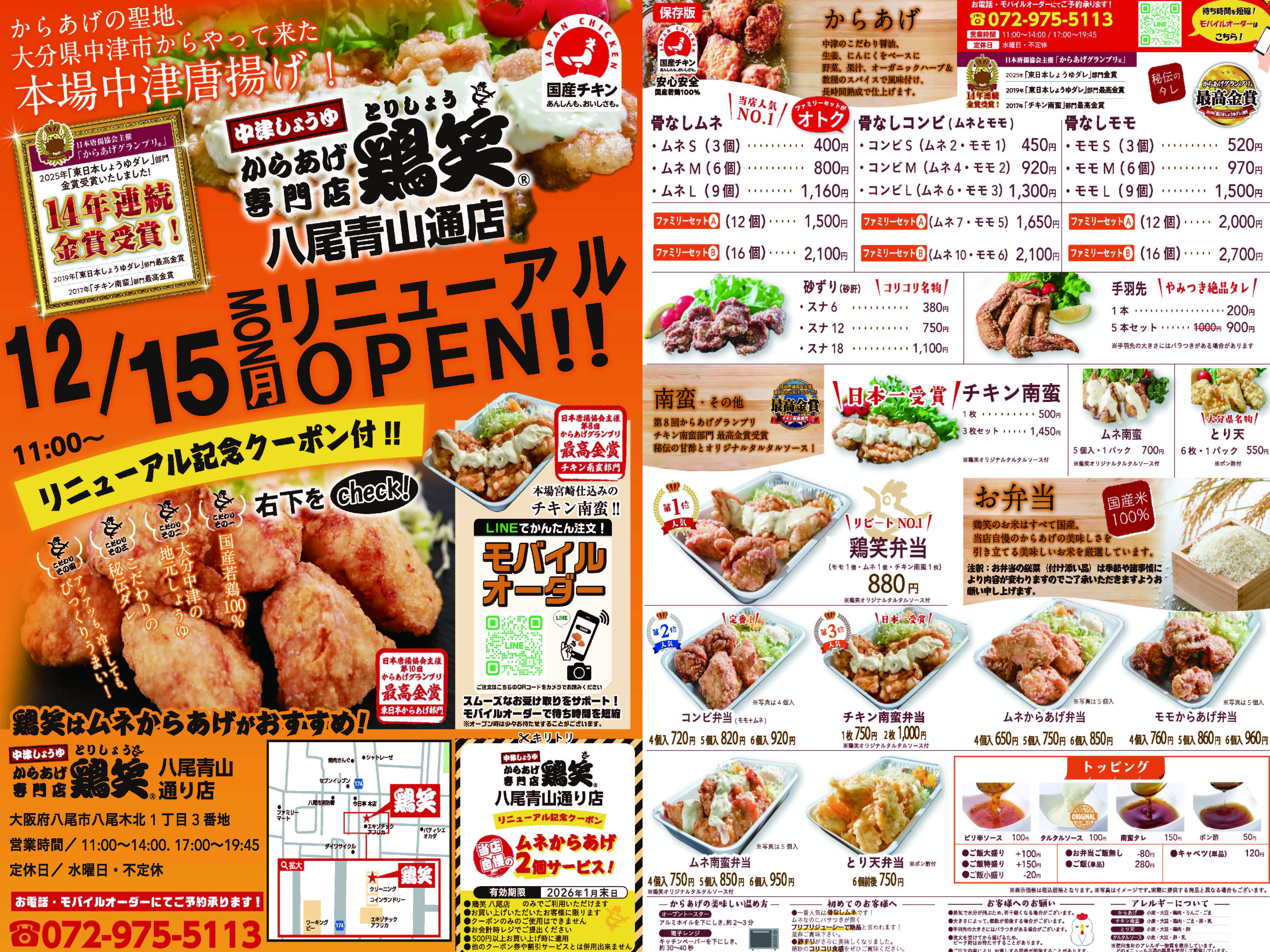 からあげ専門店 鶏笑 八戸ノ里店 (旧 東大阪宝持店)営業中 - 営業終了 20:00